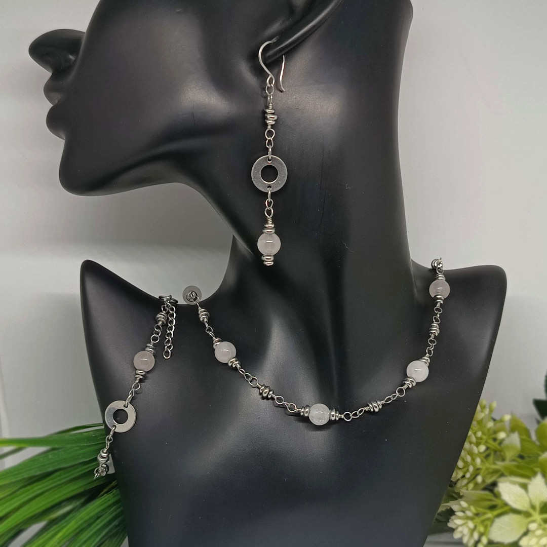 Komplet nakita od rozenkvarca i nerđajućeg čelika