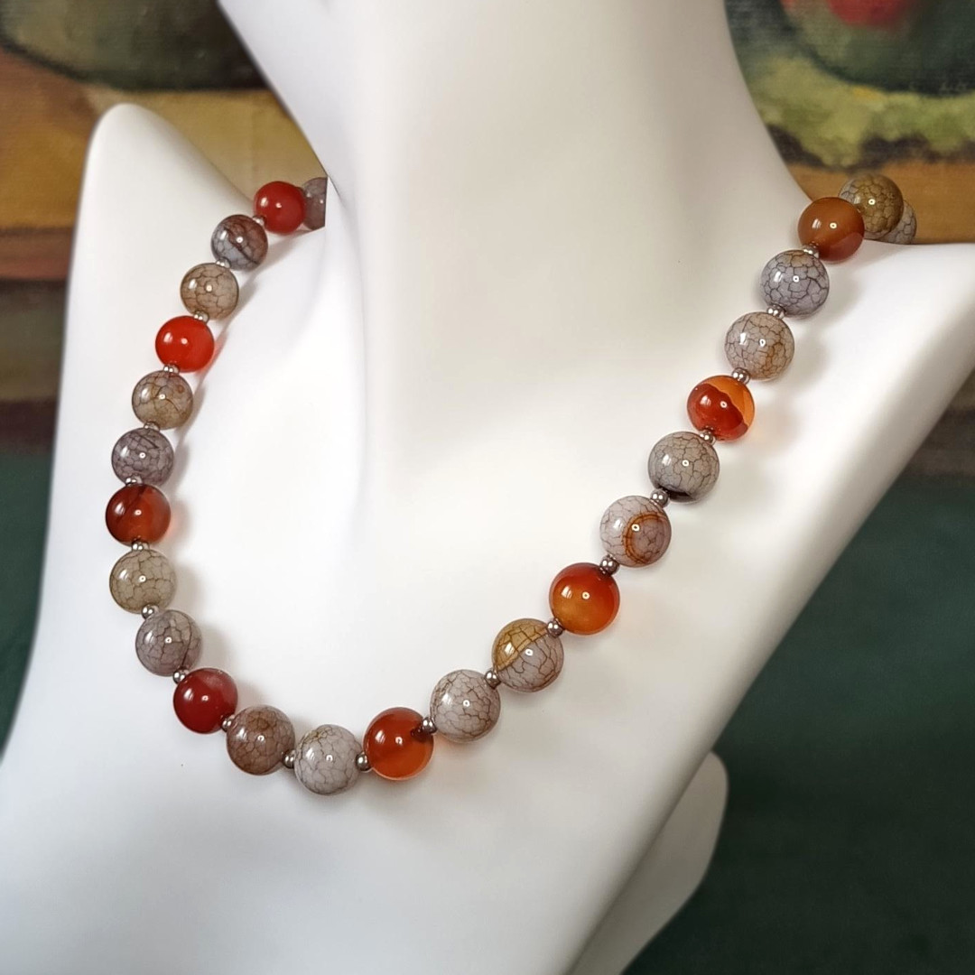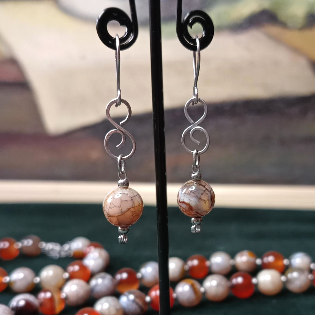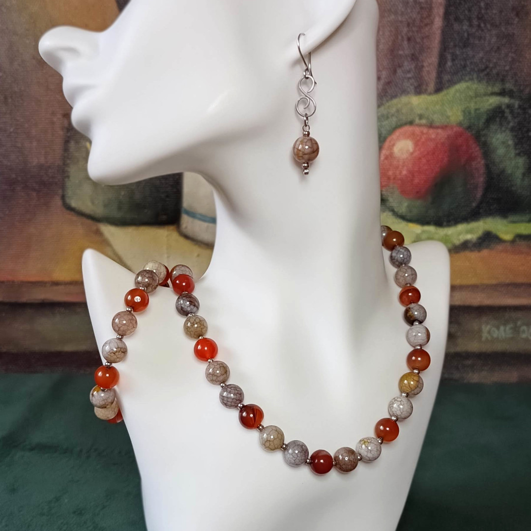 Komplet nakita od krupnog šarenog ahata i nerđajućeg čelika