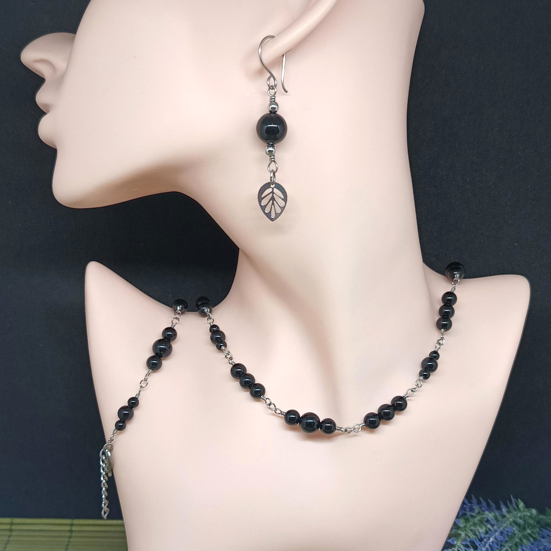 Komplet nakita od crnog sjajnog oniksa i nerđajućeg čelika